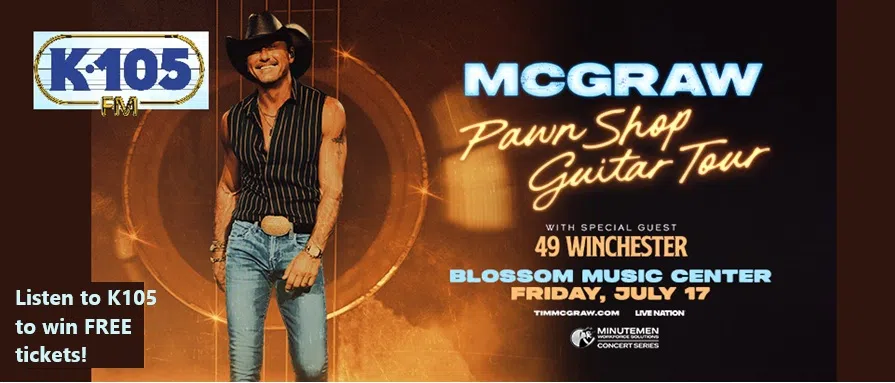 Listen to K105 to Win Free Tickets to See Tim McGraw at Blossom July 17th!