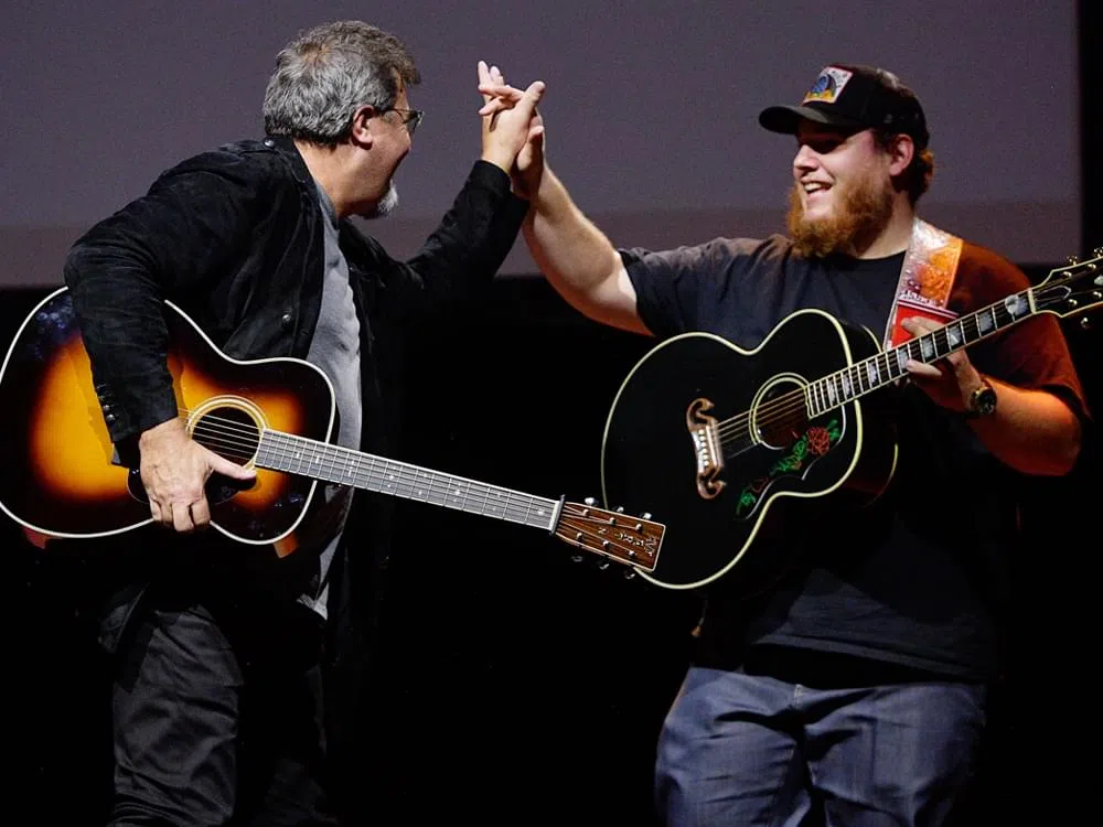 One of the highlights of the evening was Luke’s performance of “When It Rains It Pours,” which was his second No. 1 hit in 2017. As Luke crooned the tune and strummed his guitar, Vince provided some improvised lead guitar. The performance received a hearty ovation from the crowd, as well as from Emmylou and Sheryl.